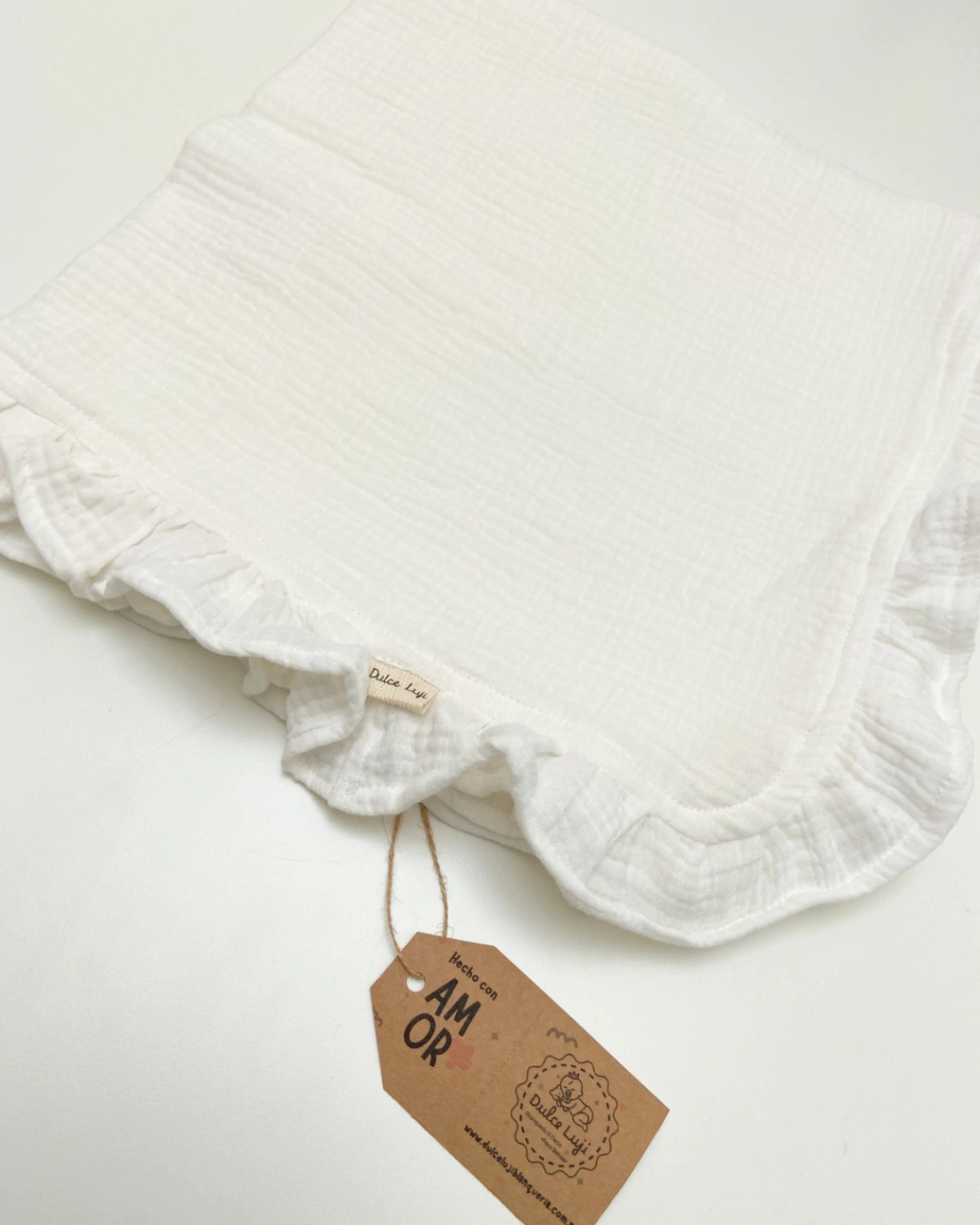 Descubrí la Manta gasa baby Cotton con volados, diseñada para envolver a tu bebé con la suavidad y ternura que merece. Con medidas de 80x80 cm y confeccionada en doble algodón, es ideal para acompañar sus primeros sueños.