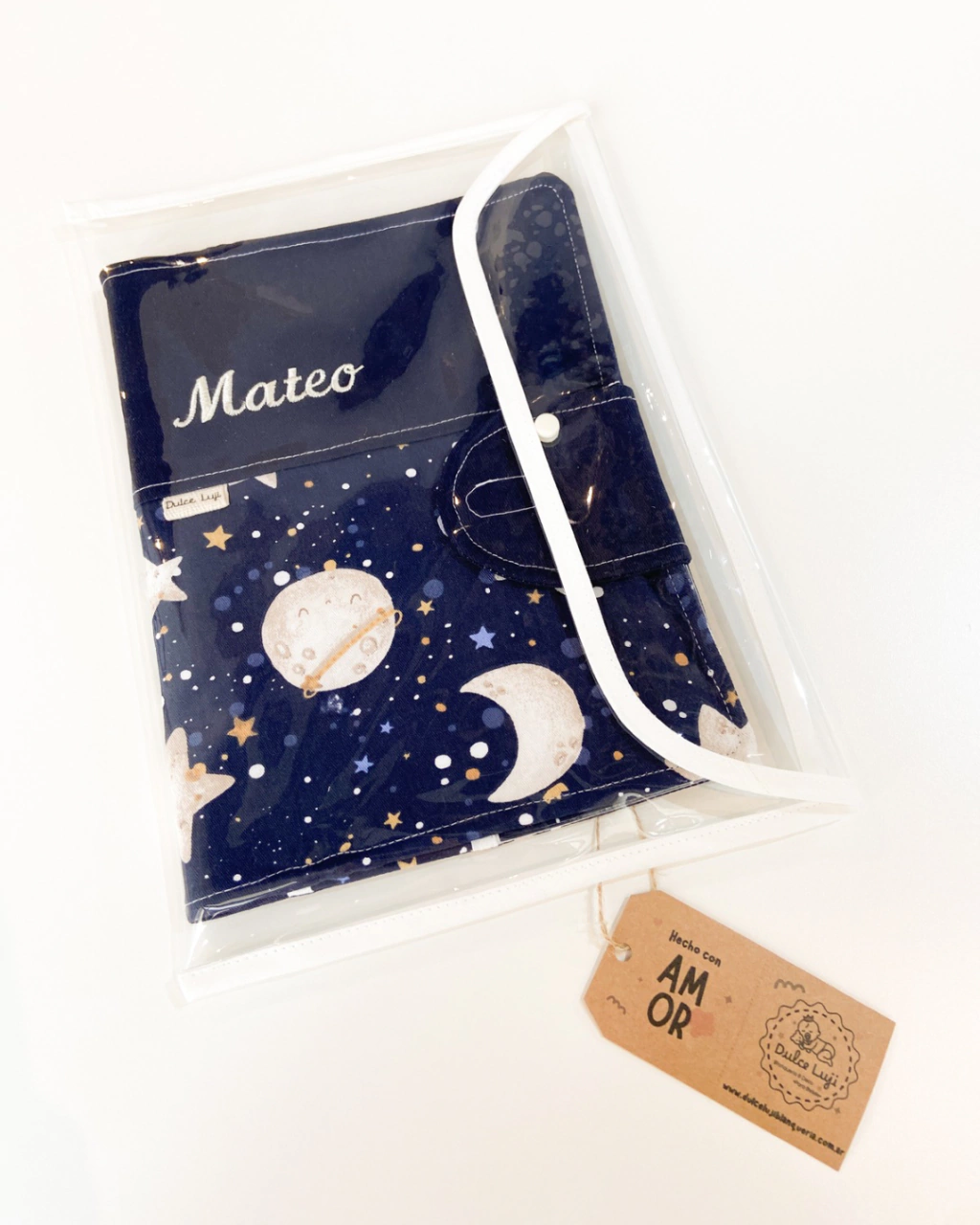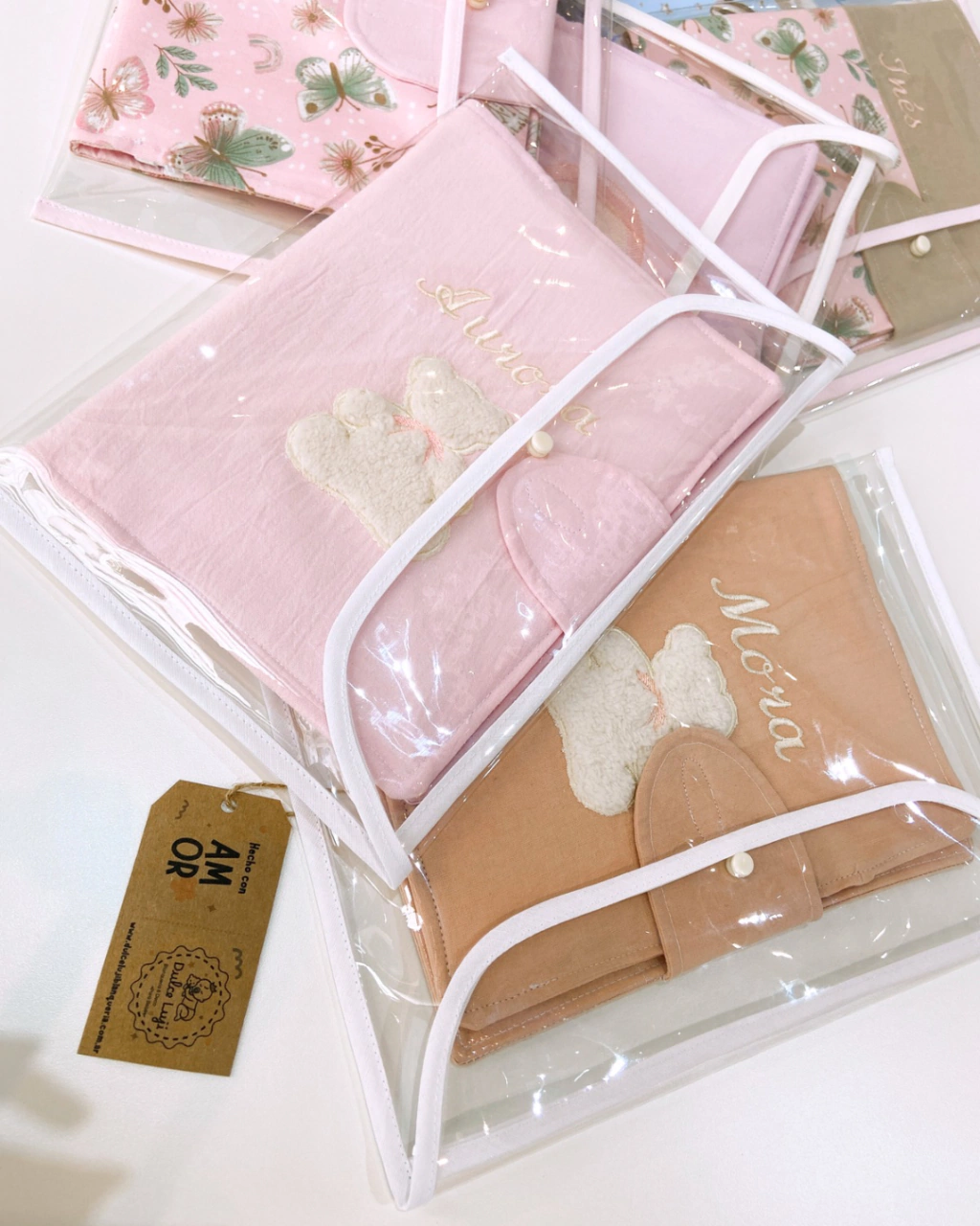 Este porta documentos se confecciona con telas premium y resistentes, garantizando durabilidad y estilo. Además, podés personalizarlo con el nombre de tu bebé, lo que lo convierte en un accesorio único y especial.