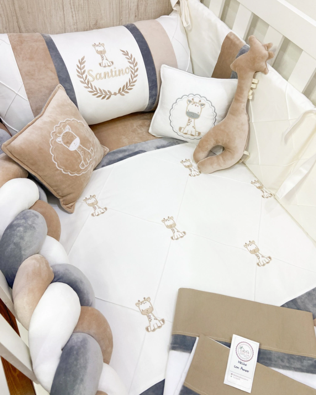 👑 Chichonera (4 lados) (Almohadón cabezal bordado desmontable / 2 laterales y pies placa de goma espuma desmontable con cierre) Opción de combinar con chichonera trenzada, tubular o almohadones con forma a elección.